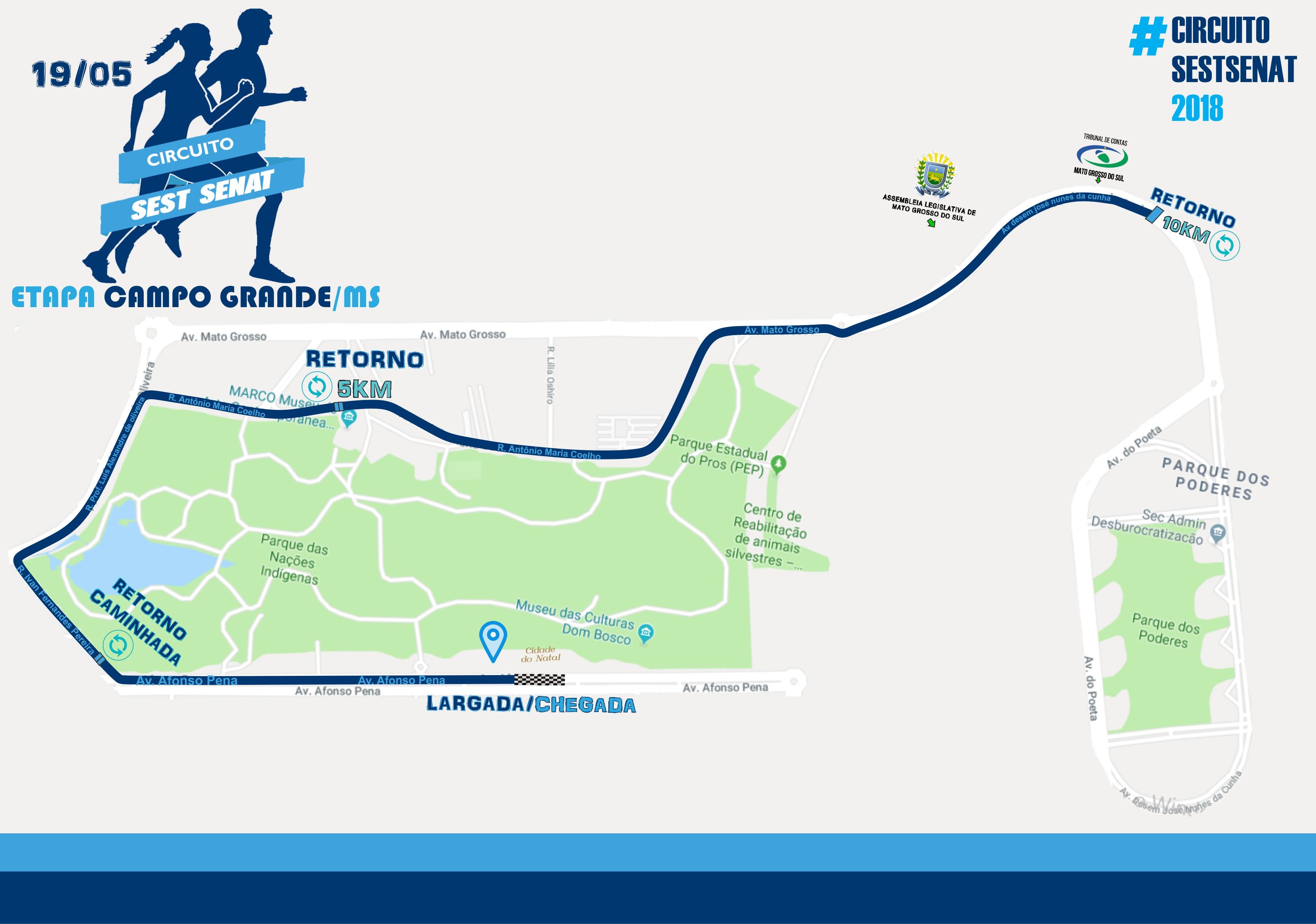 ETAPA CAMPO GRANDE/MS - CIRCUITO SEST SENAT DE CAMINHADA E CORRIDA DE RUA 2018. SAÚDE E DESAFIO PARA QUEM TRANSPORTA O BRASIL.